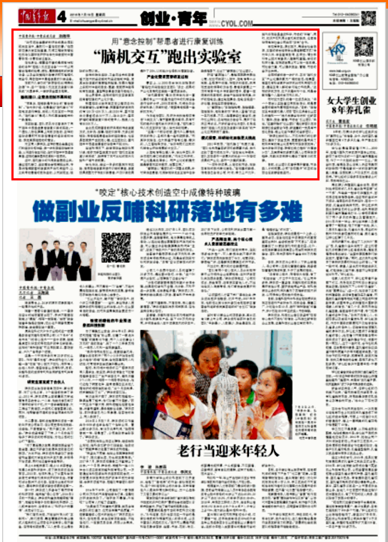 从“睿眼随心”到脑控轮椅、脑控键盘、脑控鼠标,被形象称为“渐冻人套餐”的这一系列成果,不仅入驻国家级创客空间,进行创业孵化,还与相关协会合作,展开了临床应用试点。不断的尝试也为团队日后选定的“脑控人机交互及康复训练系统”的产业化应用探明了道路。