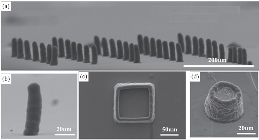 图8 (a)微米级圆柱阵列 (b)高倍数下单圆柱图像