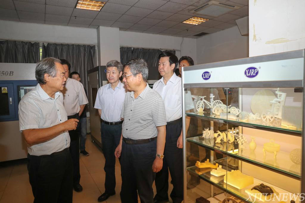在曲江校区,陈宝生部长走进了2013年获评优秀的机械制造系统工程国家重点实验室。该国家重点实验室在机械制造及自动化、系统工程和管理科学与工程学科的支撑下,形成了增材制造技术(3D打印)、微纳米压印与传感器制造、高速高精密加工、高精密测量、机械故障诊断与监测、服务型制造模式等国内领先的研究方向。