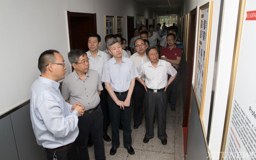 陈宝生部长参观了微纳尺度材料行为研究中心的实验室环境,他对实验室先进的管理理念和智能实验室管理系统产生了浓厚兴趣,他关怀询问实验设备运行情况和成果产出情况,并肯定了研究中心的建设成果。