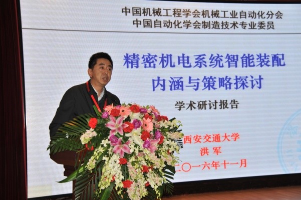 “中国机械工程学会机械工业自动化分会、中国自动化学会制造技术专业委员会 2016 年度学术会议暨换届会议”于11月18日至19日在西安唐城宾馆隆重召开。会议由中国机械工程学会机械工业自动化分会和中国自动化学会制造技术专业委员会主办,西安交通大学机械学院、机械制造系统工程国家重点实验室承办。来自国内高校、企业和研究所的业界人士、专家学者150余人共聚一堂,深入地交流探讨了制造业从信息化、自动化走向智能化的现状及前景,同时成立了中国机械工程学会机械工业自动化分会第九届委员会和成立了中国自动化学会制造技术专业委员会第七届委员会。中国航天科技集团总工程师杨海成教授当选为中国自动化学会第七届制造技术专业委员会主任委员,西安交通大学机械工程学院洪军教授当选为中国机械工程学会机械工业自动化分会第九届委员会主任委员。