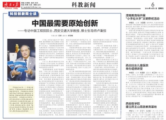 【编者按】4月1日,《陕西日报》科教新闻版在“科技创新院士谈”栏目头条刊发了西安交大卢秉恒院士的专访文章——“中国最需要原始创新”。卢秉恒院士在文章中畅谈在国家创新驱动发展战略中,高校如何发挥更大的作用,以及陕西在创新发展中应该如何应对。现全文转载如下: