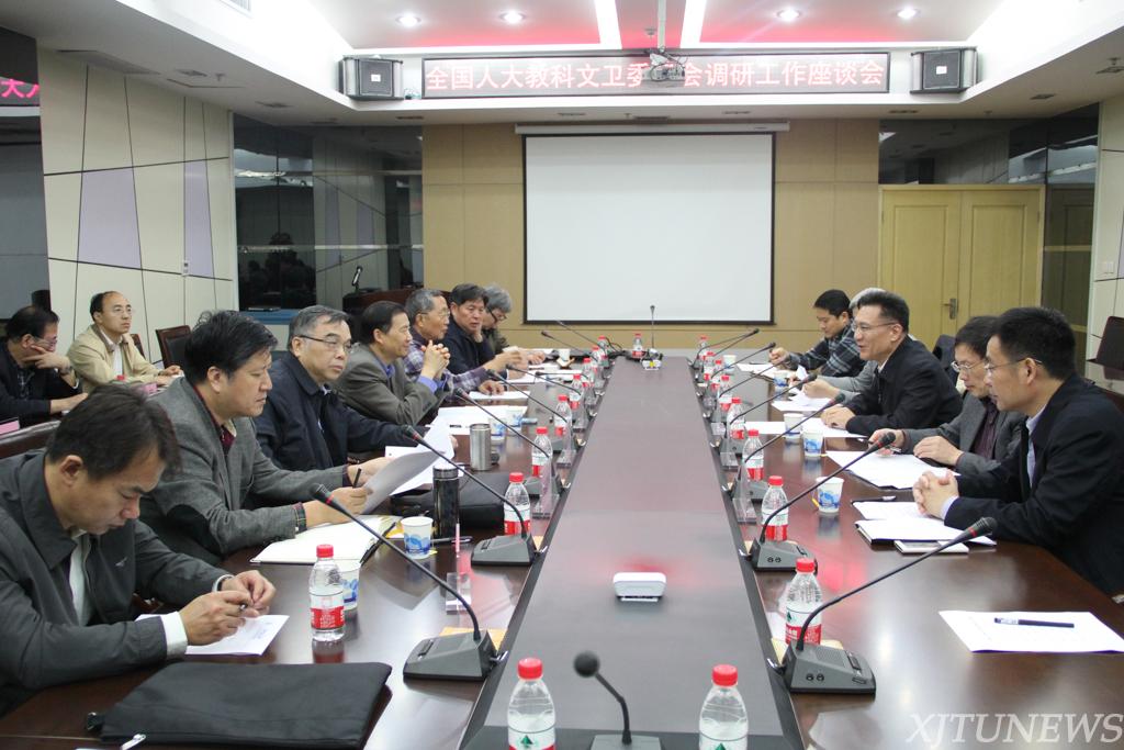 调研组一行先后考察了西安交通大学前沿科学技术研究院、机械制造系统工程国家重点实验室,听取了学校学科建设、科学研究、人才培养等工作的情况汇报,并与学校党、校办,研究生院,教务处,科研院和高教所等部门负责人座谈交流,听取对修订《高等教育法》的意见和建议。