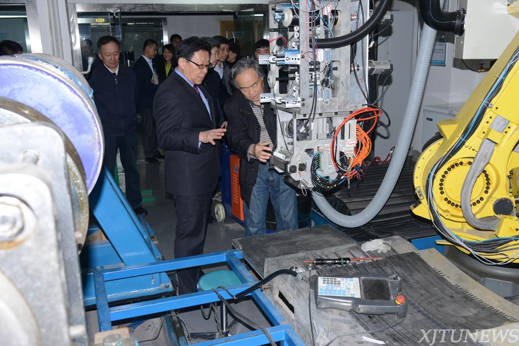 4月10日下午,海峡两岸关系协会会长陈德铭一行莅临西安交大调研科技创新工作,陕西省委统战部部长陈强、陕西省委台湾工作办公室主任闫超英、西安交大党委书记张迈曾、副校长王铁军等陪同考察。张迈曾书记向陈德铭会长汇报了学校情况,介绍了陕西省工业技术研究院的相关工作,并一同参观了机械制造系统工程国家重点实验室。