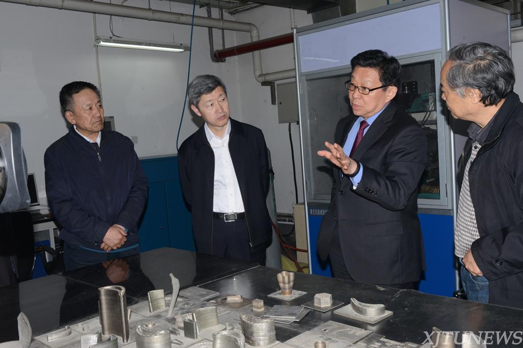 陈德铭会长一行在卢秉恒院士的陪同与讲解下参观了机械制造系统工程国家重点实验室,陈德铭会长走进每一个实验室,详细了解相关技术的关键点,并对技术成果转化相关机制的建立提出建议。他表示,西安交大在3D打印和装备制造方面的研究基础深厚,成果斐然,在制造的相关研究领域中,今后要做出更多创新性的重大成果,争取在国际制造业中掌握主动权。