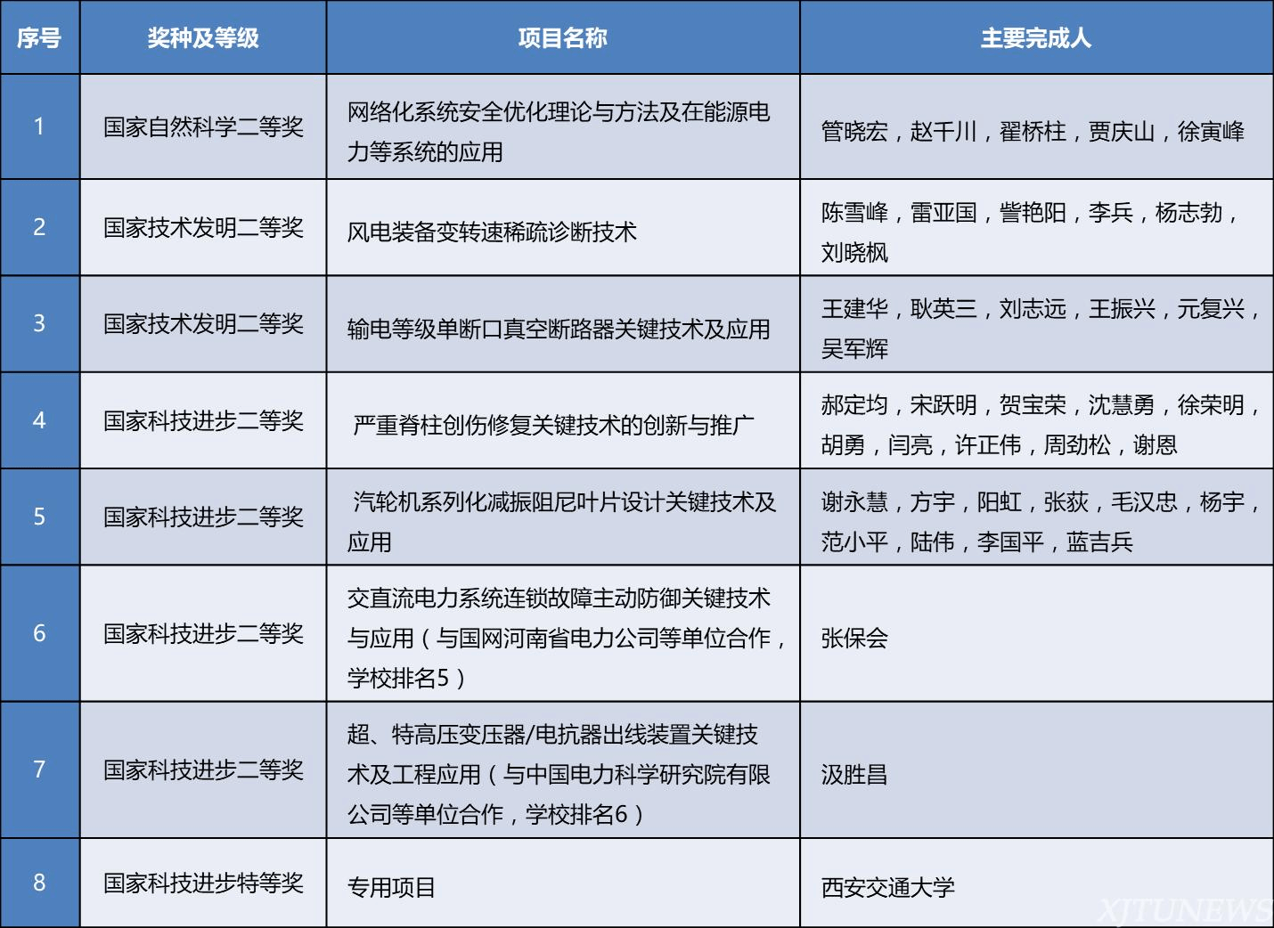西安交通大学以第一完成单位获奖的5项成果基本情况如下: