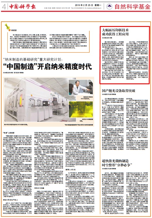 在该重大研究计划的支持下,西安交通大学、苏州大学、厦门大学等国内几十家科研机构和高校的百余位科技工作者在这一新领域展开了全面探索与协同攻关,取得了丰硕成果。其中,最具代表性的科技成果是大幅面压印新技术及其在重大工程和社会安全中的应用。