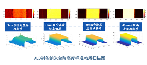 在机械制造系统工程国家重点实验室和电子陶瓷与器件教育部重点实验室的通力合作下,西安交通大学蔣庄德院士团队经过二十多年的研究,在国际上首次提出了基于原子层沉积(ALD)的纳米台阶样板制备方法,实现了台阶高度亚埃米(Å)量级的精确控制。成功采用ALD技术制备了公称高度为5nm、10nm、20nm、40nm的单台阶样板,并由中国计量科学研究院完成了定值、均匀性、稳定性检验。4种规格的纳米台阶高度样板可溯源到国家米定义波长基准,定值结果可靠,同时具有良好的均匀性和稳定性,可实现对台阶仪、原子力显微镜、轮廓仪等测量仪器的校准,并应用于微电子集成电路与国防军工、先进制造、生物医药等重点产业。