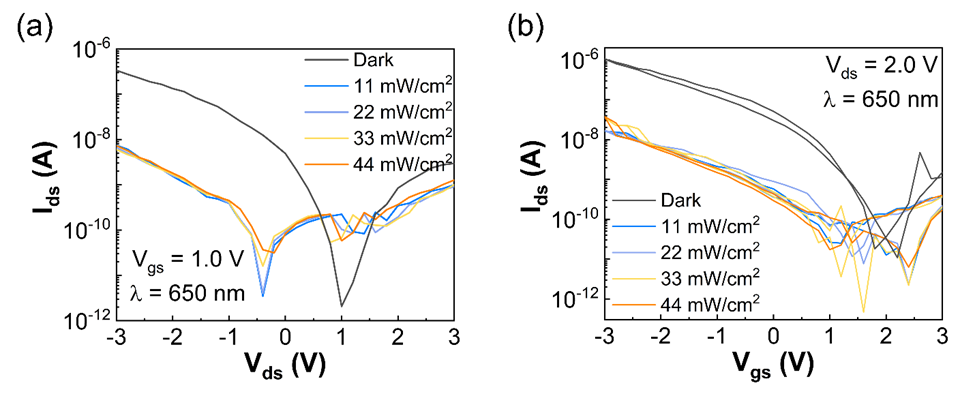 图5.在650 nm光照下二硫化钼场效应晶体管的光电响应。图片来源:Advanced Functional Materials