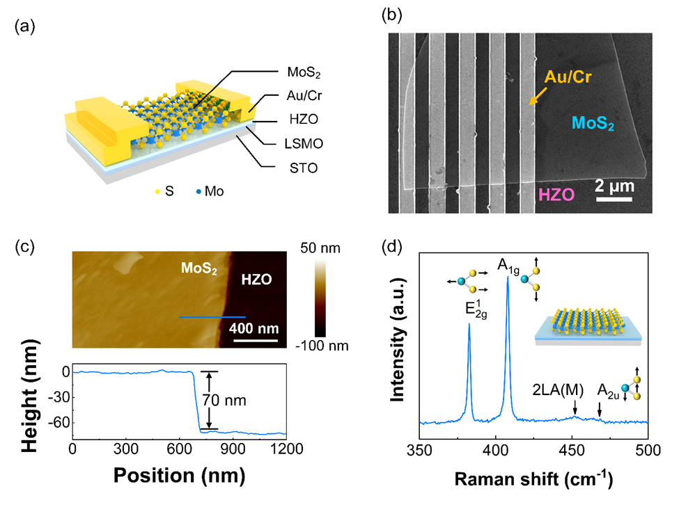 图2.二硫化钼背栅场效应晶体管结构与表征。图片来源:Advanced Functional Materials