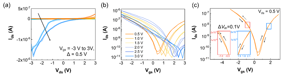 图3.二硫化钼背栅场效应晶体管电特性。图片来源:Advanced Functional Materials